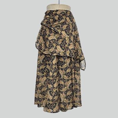 Vintage Paisley Print Ruffled Chiffon Midi Skirt Flowy Slim Skirt