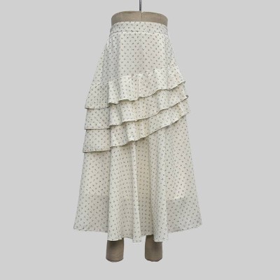 Floral Ruffle High Waist Midi Skirt Gentle Style Chiffon Skirt