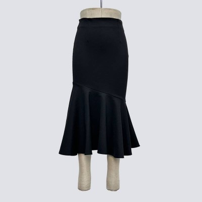 Black High Waist Slim Fit Mermaid Midi Skirt Hip-hugging Skirt