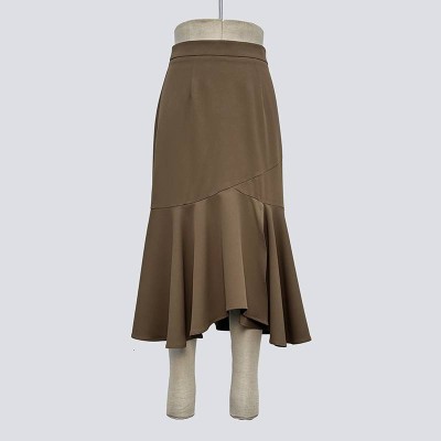 Elegant Irregular Fishtail Midi Skirt High Waist Slimming Commuter Brown Skirt