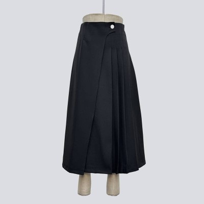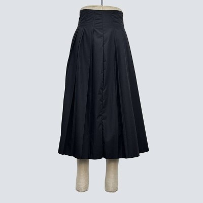 Vintage High Waist Pleated Midi Skirt Solid Color Commuter A-line Skirt