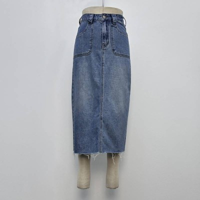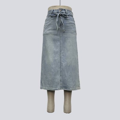 Black Gray Washed Cargo Style Denim Midi Skirt