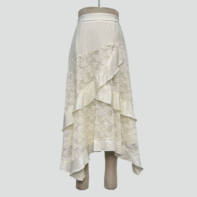 Off-white Lace Patchwork Irregular Ruffled Midi Skirt