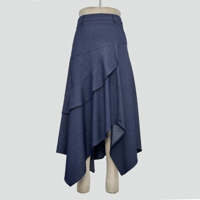 Navy Blue Irregular Ruffle High-waist Midi Skirt Elegant Commuter Slim Skirt