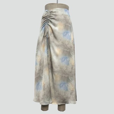 Gradient Tie-dye Drawstring Design Satin Midi Skirt