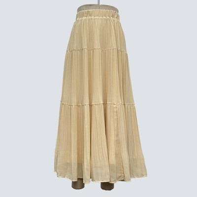Elegant Beige Pleated Patchwork Maxi Skirt Slimming Long Skirt with Drape