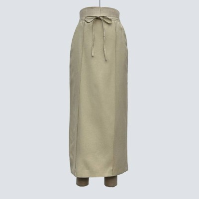 Khaki High-waisted Drawstring Draped Maxi Skirt
