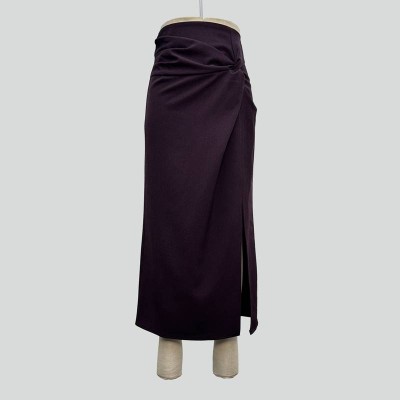 Dark Purple Twist Design Split Maxi Skirt