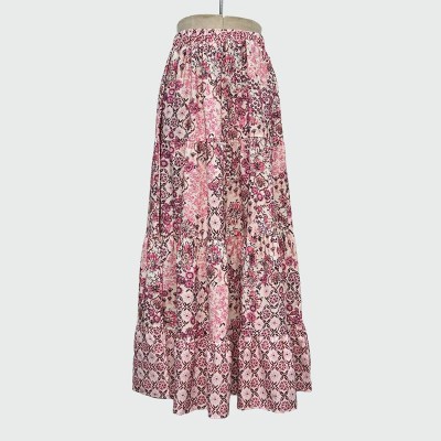 Pink Floral Ruffle Patchwork Maxi Skirt