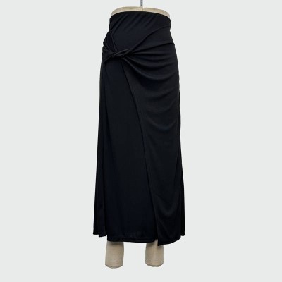 Black Twist Split Maxi Skirt High Waist Slim Fit Drape Long Skirt