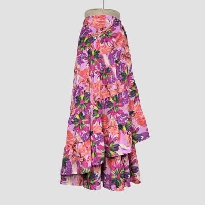 Romantic Floral Print Ruffled Asymmetrical Maxi Skirt