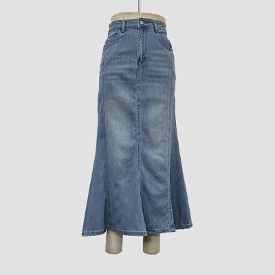 Vintage Washed Denim Mermaid Maxi Skirt
