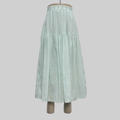 Fresh Mint Green Hollow Embroidery Elastic Waist Maxi Skirt