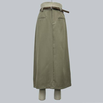 Vintage High Waist Belted Maxi Skirt Commuter Versatile Slim Skirt