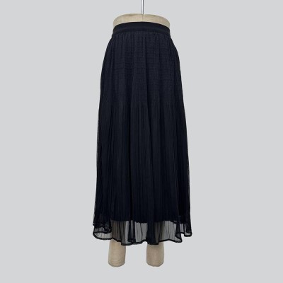 Black High-waisted Pleated Chiffon Maxi Skirt Flowy Slimming Commuter Mid-length Skirt