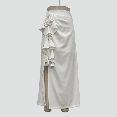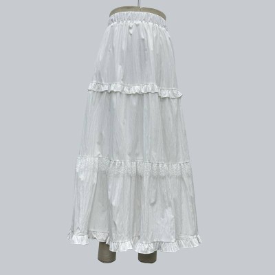 French White Lace Ruffle Maxi Skirt Elastic Waist Fairy Style Swing Long Skirt