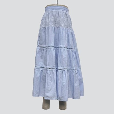 Light Blue Hollow-out Patchwork Elastic Waist Maxi Skirt