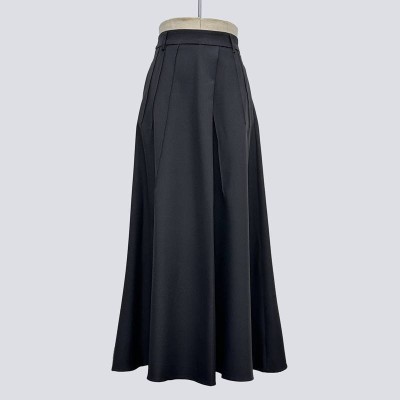 Simple Black High Waist Drooping Midi Skirt Commuter Versatile Slimming Swing Skirt