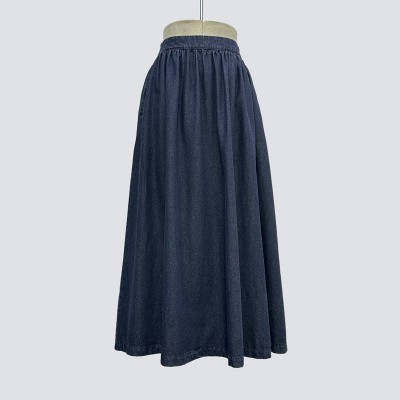 Vintage Dark Denim Elastic Waist Midi Skirt Loose A-line Skirt