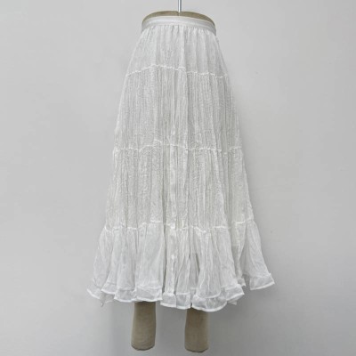 Elegant White Pleated Patchwork Maxi Skirt Elastic Waist Drape Slimming Midi Skirt