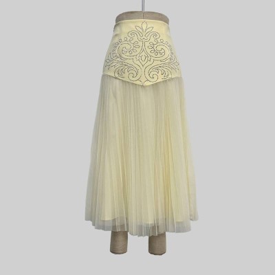 Light Beige Rhinestone High Waist Tulle Long Skirt