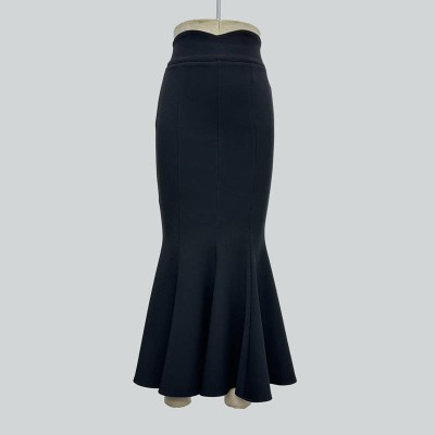 Black High Waist Slim Mermaid Hem Midi Skirt Elegant Hip-hugging Skirt