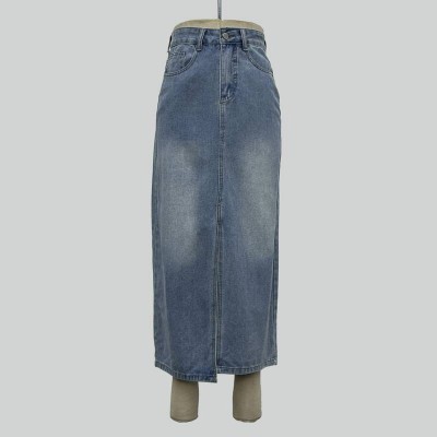 Vintage Washed Split Denim Maxi Skirt