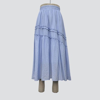 Light Blue Ruffled Maxi Skirt Elastic High Waist Slim A-line Skirt