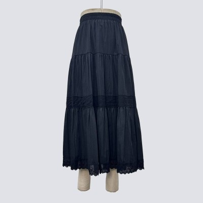 Black Lace Patchwork Elastic Waist Maxi Skirt