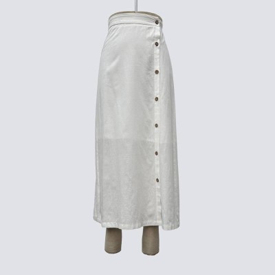 Simple Solid Color High Waist Maxi Skirt with Side Button Design