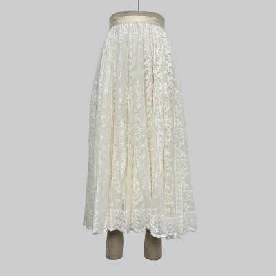 Vintage Lace Embroidered Midi Skirt Elegant Off-white Long Skirt