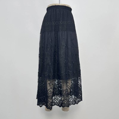 Vintage Black Lace Mesh Maxi Skirt High Waist Sheer Fairy Skirt