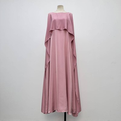 Pink Satin Cape-style Long Evening Dress Elegant Banquet Maxi Dress