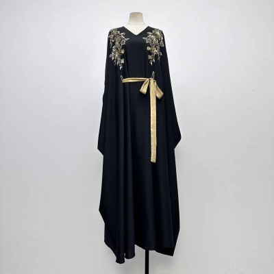 Black Gold Trim Embroidered V-neck Long Dress Luxury Banquet Party Maxi Dress