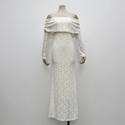 White Off-the-shoulder Lace Slim Long Dress Elegant Evening Gown