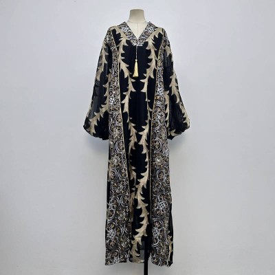 Exquisite Embroidery V-neck Tassel Long Dress Retro Loose Robe Dress
