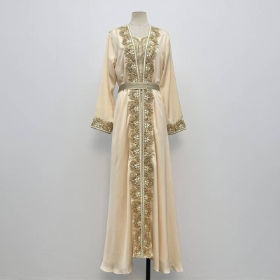 Exquisite Embroidered V-neck Waist-tie Long Dress Elegant Satin Gown