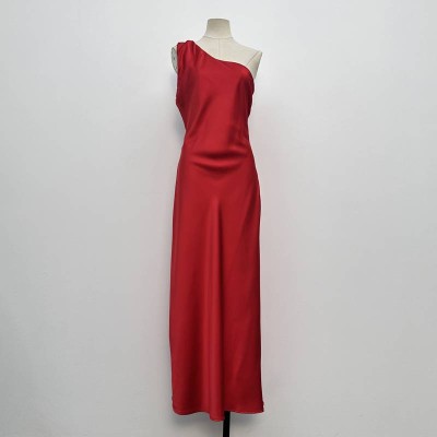 Elegant Red One-Shoulder Satin Long Dress Luxury Party Evening Gown