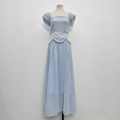 Light Blue Off-Shoulder Waist Cinched Chiffon Maxi Dress Elegant Party Evening Gown