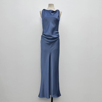 Elegant Satin Sleeveless Slip Maxi Dress Slim Fit Evening Party Dress