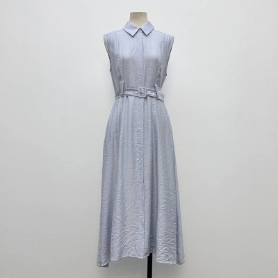 Sleeveless Lapel Waist-Tie Midi Shirt Dress
