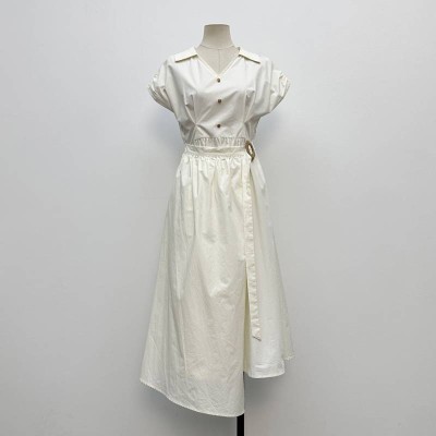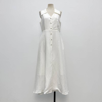 White Sleeveless Embroidered Shirt Collar Waist-trimmed Midi Dress