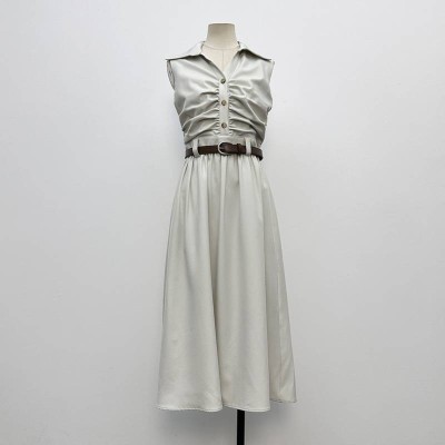 Sleeveless Lapel Waist-cinched Slim-fit Midi Shirt Dress