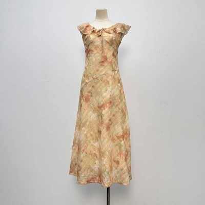French Tie-dye Chiffon Ruffled Midi Dress