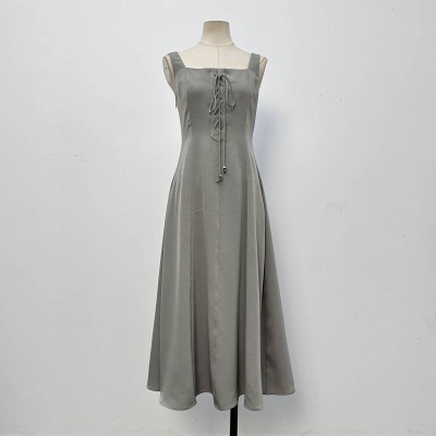 Grey Square Neck Lace-up Sleeveless Midi Dress, Elegant Simple Dress