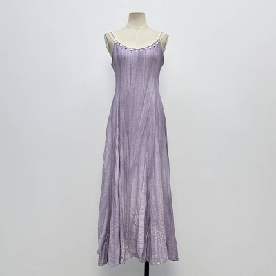 Elegant Purple Beaded Spaghetti Strap Maxi Dress Slim Fit Dress