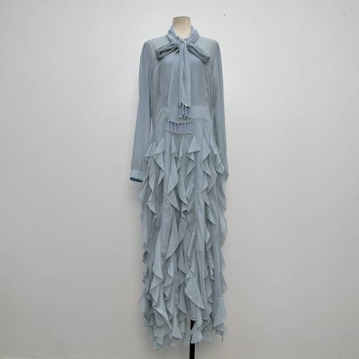Elegant Bow Tie Neck Chiffon Maxi Dress, Tiered Ruffled Temperament Dress