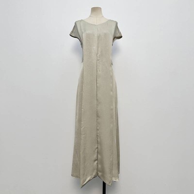 Elegant Satin-like Short Sleeve Maxi Dress Simple Solid Color Slim Fit Dress