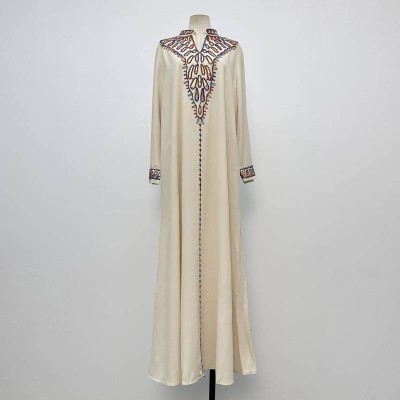 Vintage Embroidered Stand Collar Long Sleeve Maxi Dress