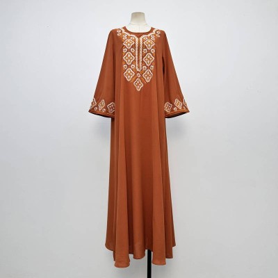 Vintage Embroidered Round Neck Long Sleeve Loose Maxi Dress